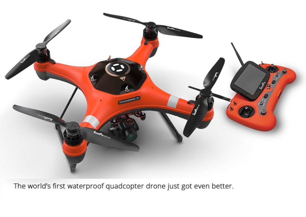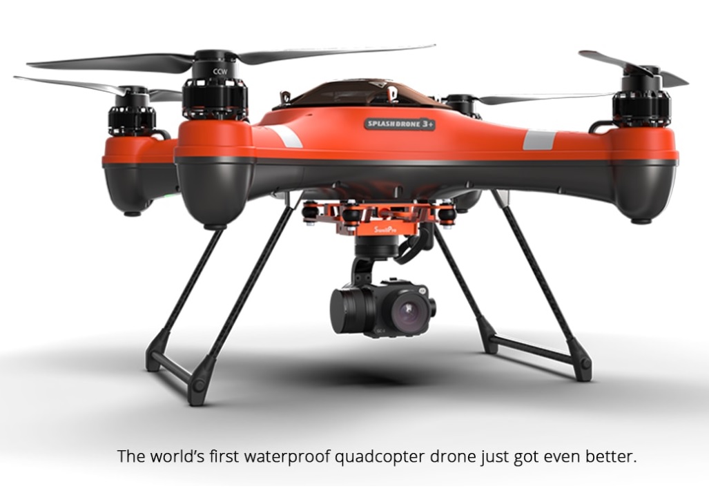 Swellpro Splashdrone 3+ Waterproof Drone for search and rescue, for filming, for fishing, for boating.