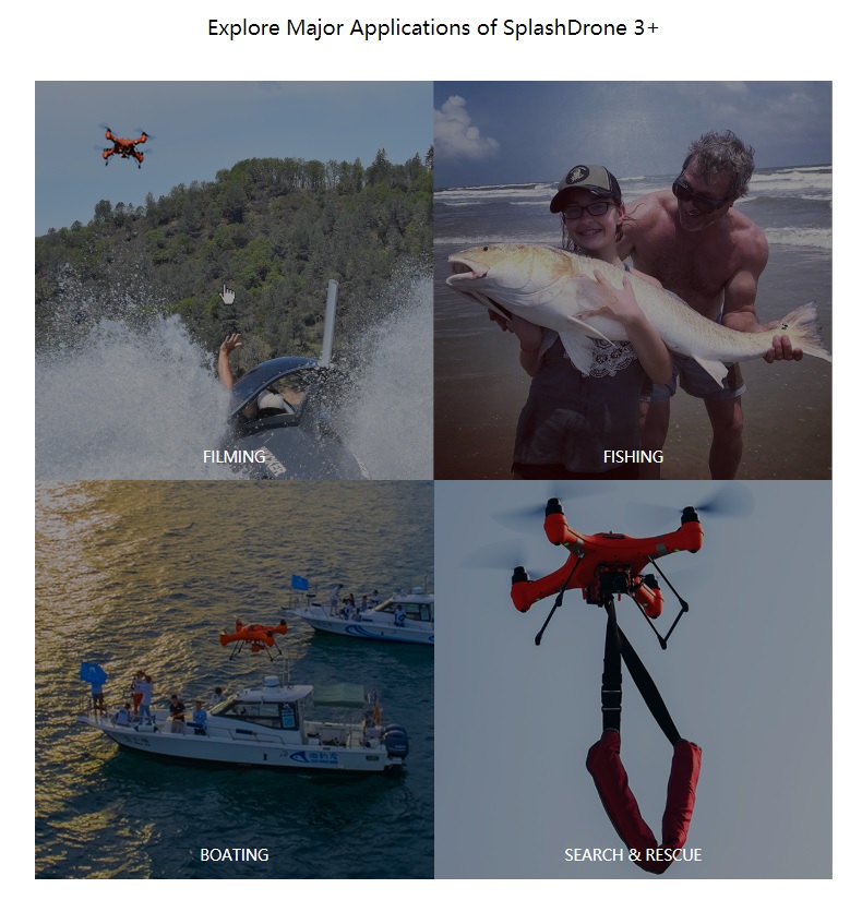 Here, we have different versions of the Swellpro Splashdrone 3+ Waterproof Drone and different drone types depending on the leisure purpose (for search and rescue, for filming, for fishing, for boating)