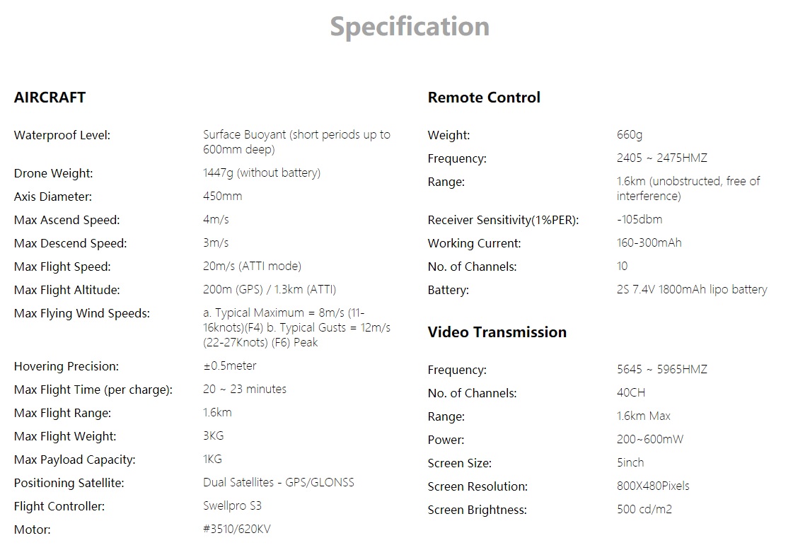 Max Flight Altitude:200m (GPS) / 1.3km (ATTI)